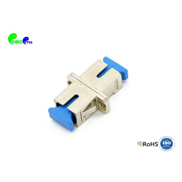 SC SM UPC Simplex Metal Fiber Optic Adapter With Flange Blue Color Dust Cap Images |